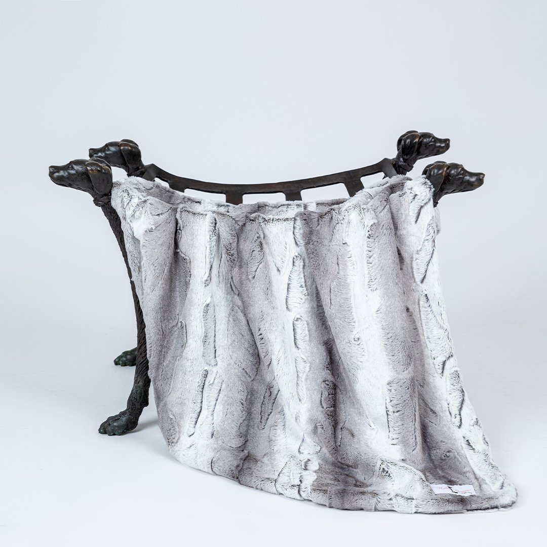 Hello Doggie's Cashmere collection is crafted with ultra soft high quality fabric that will have your baby drifting off into sweet dreams. So cozy you’ll want one too! Enjoy a matching throw blanket to snuggle up on the couch with your puppy. Matching dog bed also available. Care Instructions: Wash on gentle cycle, no bleach or fabric softener. Tumble dry low. Dimensions Small Blanket - 17" x 14"  |  For dogs up to 5 Lbs MSRP - $49.99 Large Blanket - 34" x 29"  |   For dogs up to 20 Lbs MSRP - $79.99 Throw Blanket - 59" x 59"  |  For dogs up to 100  Lbs + MSRP -  $360.00 *Blanket is handmade and sizes may vary slightly. Made in USA.